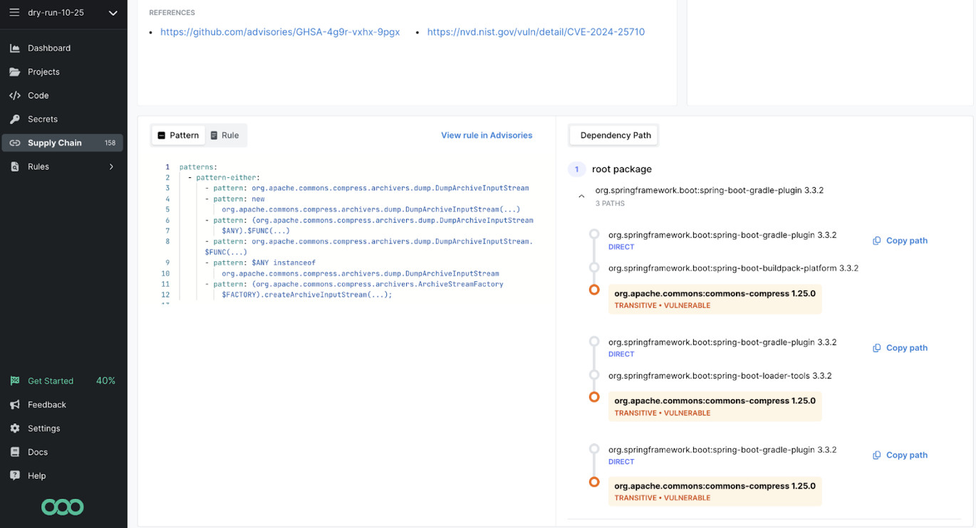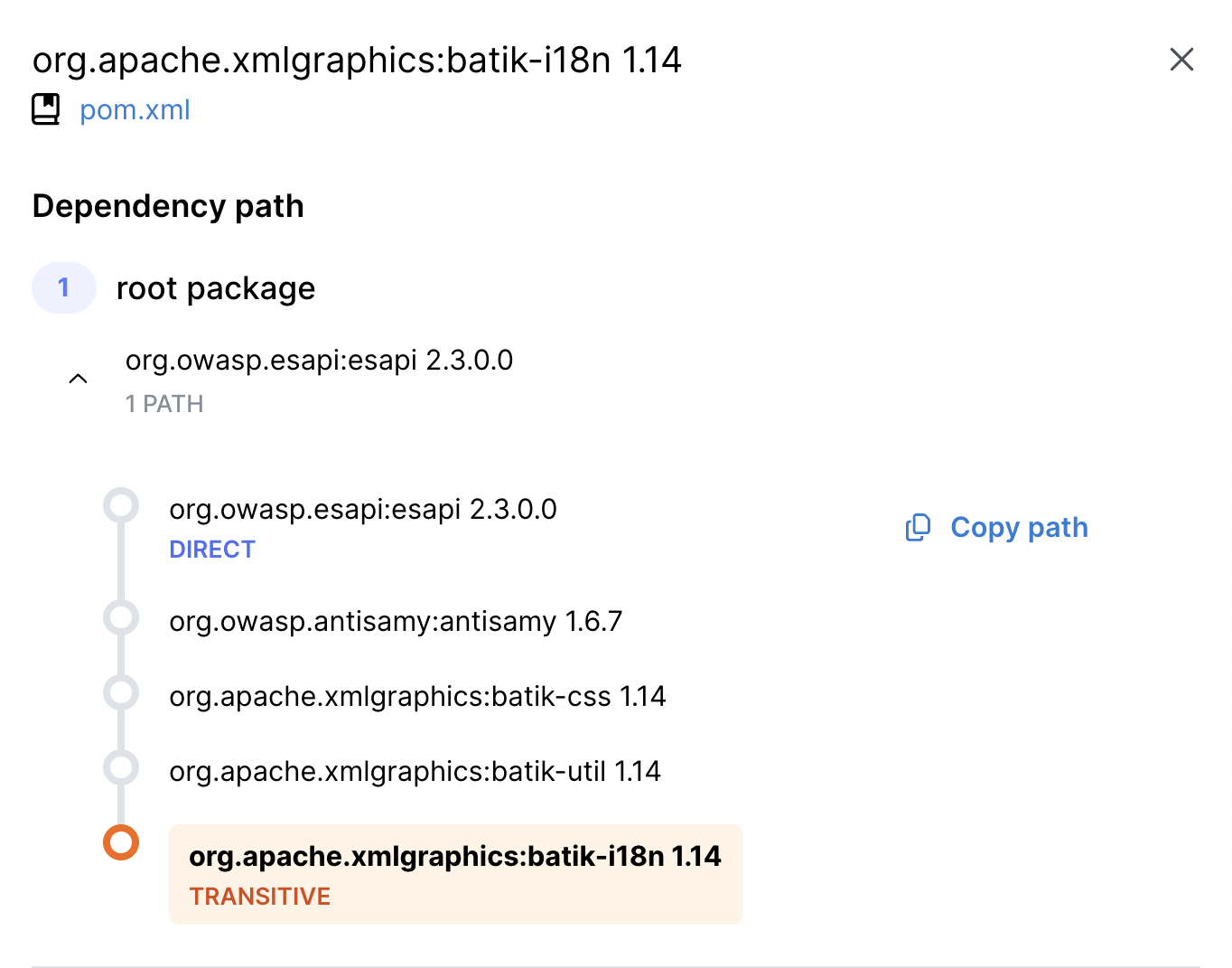 This visualization helps automate a critical part of the triage process for transitive vulnerabilities, saves precious time and effort, and enables AppSec teams to focus on higher their ultimate goals: reduction of risk and installing secure guardrails.