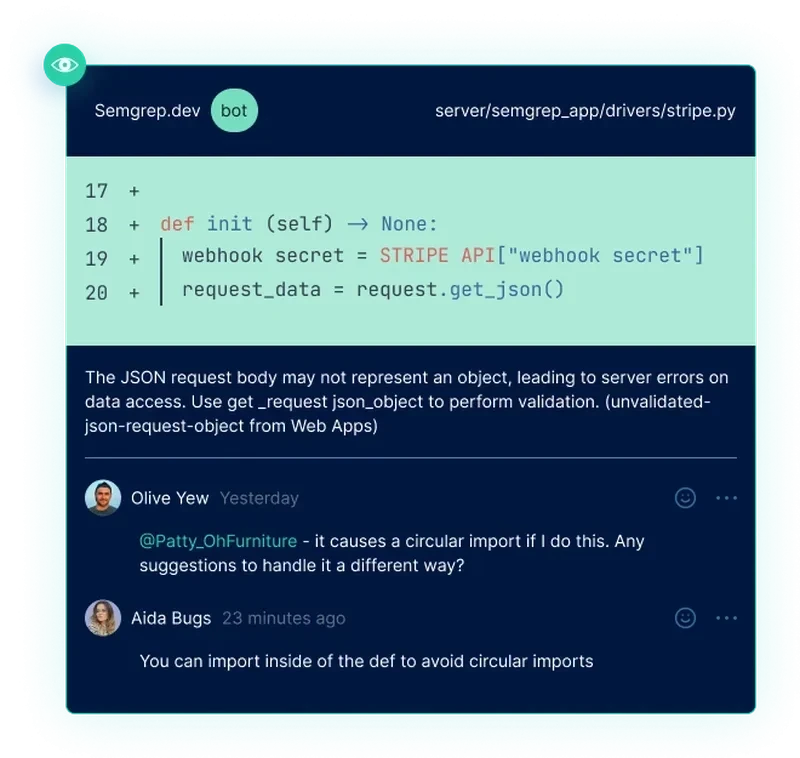 “Figmates get actionable security feedback in their PRs, while rule analytics give the security team feedback on the effectiveness of our rules. The simple syntax lets us extend Semgrep to catch new patterns, going from idea to live in an hour.”
